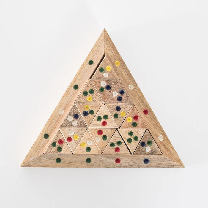 The Triangle Puzzle Game will entertain kids and adults at your next family gathering, weekly game night, or party! Handcrafted from fast-growing mango wood by artisans of the Asha Handicrafts Association. Sanskrit for “hope,” Asha provides opportunities for artisans in and around Mumbai in India.