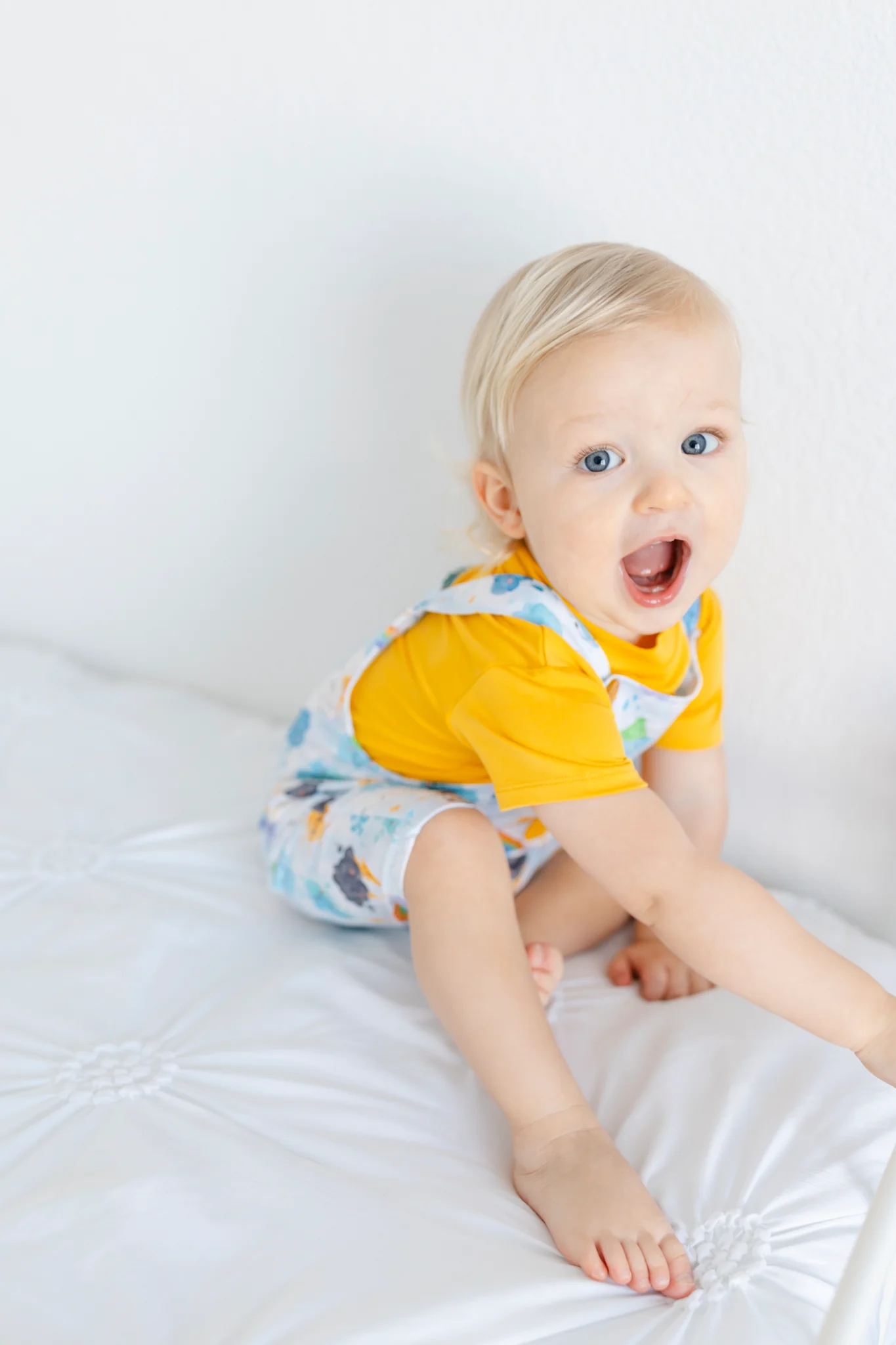 Our 2-piece Overalls are the perfect daywear in bamboo. They are made in our signature design with a solid shirt and printed overalls. They come with adjustable straps. They are adorable and comfortable. Makes them perfect to match our blankets and loveys. They have a Seasonless fabric to them, making them perfect to keep warm in the winter and cooler in the summer. They are made with a thicker bamboo.